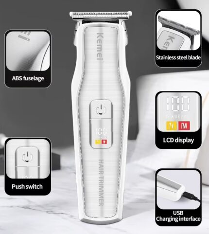 Επαναφορτιζόμενη κουρευτική και ξυριστική μηχανή της Kemei, με λεπίδα ακριβείας από ανοξείδωτο ατσάλι, κατάλληλη για κάθε είδους περιποίηση σε μαλλιά,