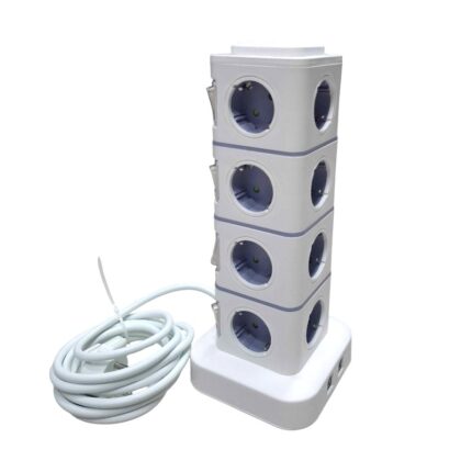Κάθετο πολύπριζο 12 θέσεων, με 4 θύρες USB και πρίζα Σούκο – RC-G12P.Μήκος καλωδίου: 3m