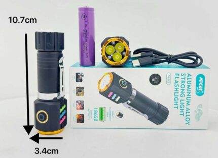 Επαναφορτιζόμενος φακός χειρός LED 603TG με πλαϊνό φακό και πολλαπλές λειτουργίες. Χαρακτηριστικά: Στιβαρή κατασκευή με περίβλημα αλουμινίου, 2 επίπεδα φωτισμού,Πλαϊνός