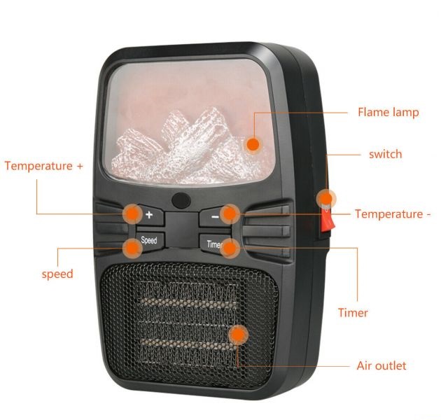 Mini πρακτικό αερόθερμο υψηλής ισχύος και απόδοσης, ιδανικό για οικονομική θέρμανση δωματίου, με εντυπωσιακό εφέ φλόγας τζακιού που θα δημιουργήσει μια υπέροχη ζεστή ατμόσφαιρα στον χώρο σας.