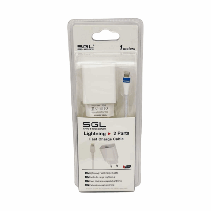 Αντάπτορας φόρτισης Quick Charge με καλώδιο Lightning και 2 θύρες USB: 1A & 2.1A. Μήκος: 1m. Χρώμα: Λευκό.