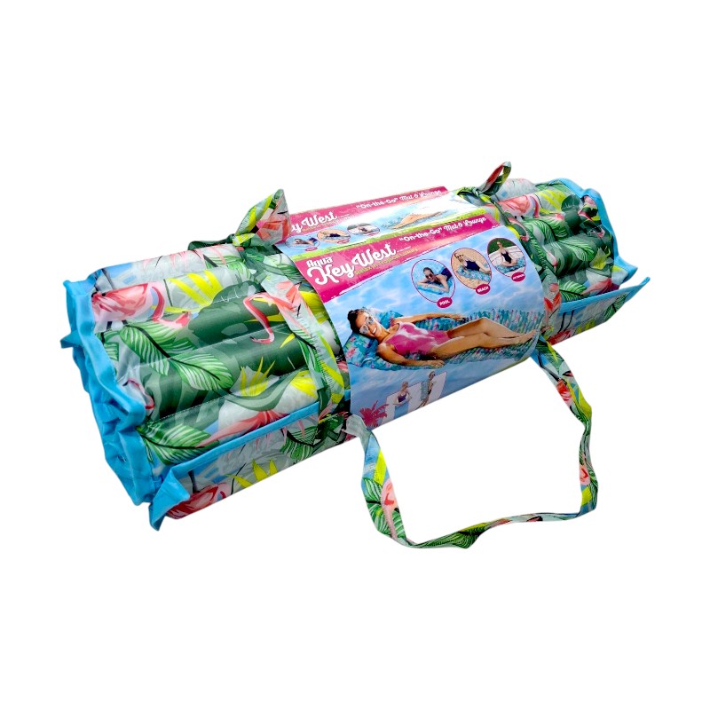 Πτυσσόμενο αφρώδες στρώμα που επιπλέει στο νερό, ιδανικό για τη θάλασσα ή ως υπόστρωμα camping.