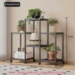 Διακοσμητική ραφιέρα δαπέδου με 6 τετράγωνα ράφια, συναρμολογούμενη, με μεταλλικό σκελετό και πλαστικά ανθεκτικά ράφια, ιδανική για την οργάνωση φυτών και την διακόσμηση χώρου.