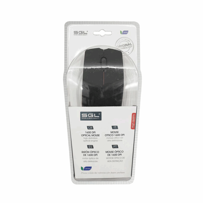 Ενσύρματο ποντίκι Η/Υ της SGL, οπτικό, με εργονομικό design και υψηλές αποδόσεις, ιδανικό για καθημερινή χρήση. Max 1600 DPI. Αριθμός πλήκτρων: 3. Μήκος καλωδίου: 1.2m.
