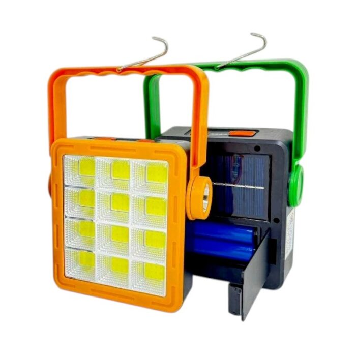 Επαναφορτιζόμενος προβολέας εργασίας LED με ηλιακό πάνελ που προσφέρει έξτρα αυτονομία μπαταρίας και με πτυσσόμενο σταντ στήριξης.