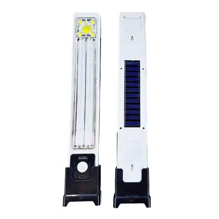 Επαναφορτιζόμενο φως LED έκτακτης ανάγκης με ηλιακό πάνελ στο πίσω μέρος. Χαρακτηριστικά: Ισχύς: 45W, Φορτίζει μέσω USB (περιλαμβάνεται) ή μέσω του ηλιακό πάνελ που διαθέτει, Με θερμό και ψυχρό φωτισμό, Ενσωματωμένη επαναφορτιζόμενη μπαταρία, Διάρκεια φόρτισης: 8-12 ώρες, Διάρκεια λειτουργίας: έως 10 ώρες, ανάλογα με την ένταση φωτισμού, Πτυσσόμενη χειρολαβή μεταφοράς, Διαστάσεις με τη βάση: 52 x 9 cm. Περιλαμβάνει: Καλώδιο φόρτισης USB, Βάση στήριξης.