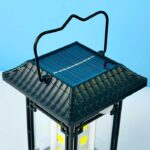 Επαναφορτιζόμενο φαναράκι LED με ηλιακό πάνελ στο επάνω μέρος για έξτρα αυτονομία μπαταρίας και αισθητήρα κίνησης που το ενεργοποιεί αυτόματα μόλις εντοπίσει κίνηση σε έως και 4m απόσταση. Διαθέτει επιτραπέζια βάση, επιτοίχια βάση με βίδες και χειρολαβή/ κρεμάστρα ανάρτησης. Περιλαμβάνει τηλεχειριστήριο για απομακρυσμένο έλεγχο. Ιδανικό για τον κήπο, το camping και φωτισμό σε κάθε υπαίθριο χώρο. Αυτονομία μπαταρίας: έως 4 ώρες. Τροφοδοσία: 1.Ηλιακό πάνελ – Φόρτιση 8 ώρες σε ηλιοφάνεια, 2. Επαναφορτιζόμενες μπαταρίες 2*18650 (περιλαμβάνονται μπαταρίες και καλώδιο φόρτισης).
