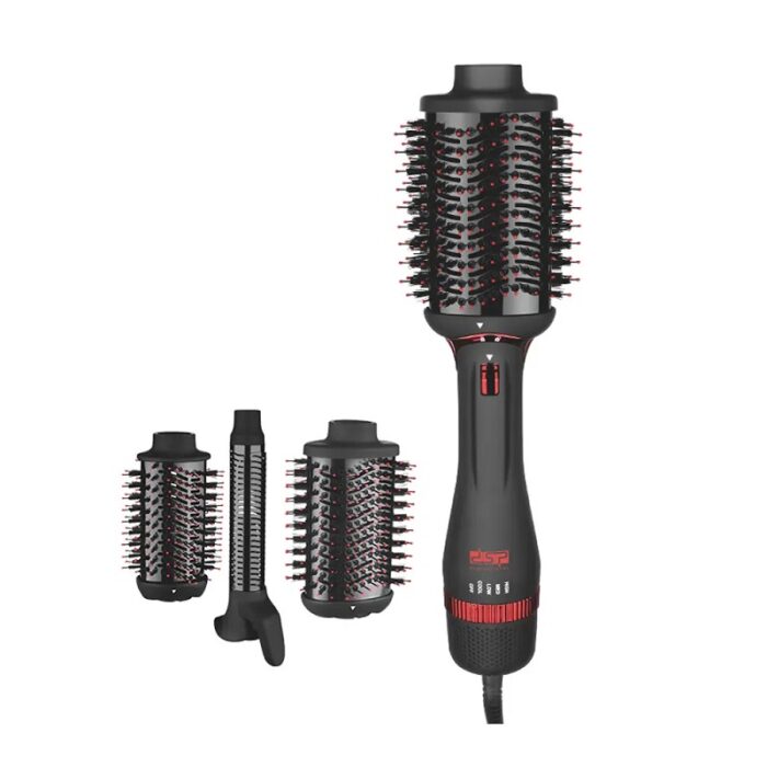 Ηλεκτρική βούρτσα μαλλιών της DSP 3 σε 1, που στεγνώνει, χτενίζει, φορμάρει και κάνει μπούκλες τα μαλλιά σας σε ελάχιστο χρόνο με τη δύναμη του αέρα, προστατεύοντάς τα παράλληλα από τη φθορά της θερμότητας, αφήνοντας ένα λείο, λαμπερό αποτέλεσμα. Ο εργονομικός σχεδιασμός της με περιστρεφόμενο καλώδιο τροφοδοσίας προσφέρει μεγαλύτερη ευχέρεια κινήσεων κατά το χτένισμα. Στη συσκευασία περιλαμβάνονται 3 εξαρτήματα για στέγνωμα, χτένισμα και μπούκλες. Ένα επαγγελματικό πολυεργαλείο μαλλιών που θα σας προσφέρει αποτέλεσμα κομμωτηρίου στην άνεση του σπιτιού σας!