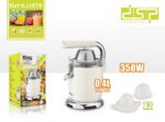 Ηλεκτρικός στίφτης της DSP με λαβή για εύκολη πίεση και βρυσάκι εξαγωγής του χυμού απευθείας στο ποτήρι σας. Υψηλής απόδοσης, πρακτικός και εύχρηστος για να έχετε καθημερινά γρήγορα και χωρίς κόπο τον αγαπημένο σας χυμό πορτοκαλιού, λεμονιού κα. Διαθέτει 2 κώνους στυψίματος διαφορετικού μεγέθους για μικρότερα και μεγαλύτερα φρούτα.