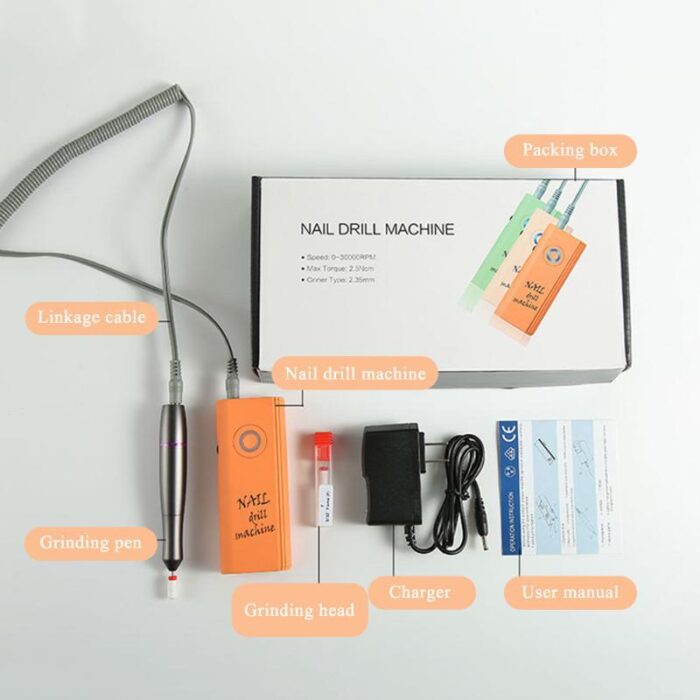 Επαναφορτιζόμενος ηλεκτρικός τροχός νυχιών με ενσωματωμένη μπαταρία, κατάλληλος για επαγγελματική χρήση.