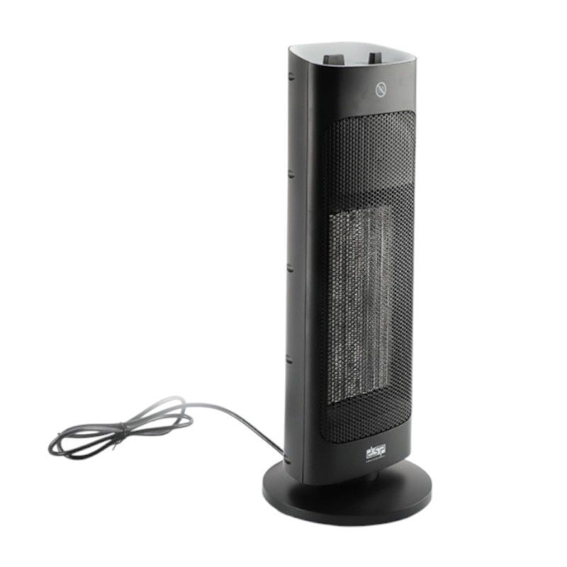 Ηλεκτρικό αερόθερμο της DSP, περιστρεφόμενο για ομοιόμορφη κατανομή της θερμότητας και σε πρακτικό σχεδιασμό πύργου που δεν καταλαμβάνει χώρο.
