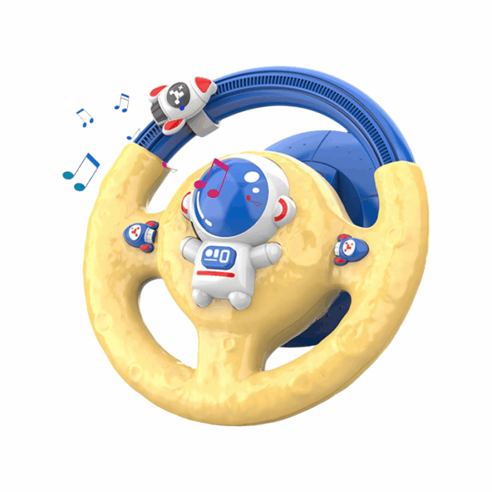Παιδική ηλεκτρονική τιμονιέρα σε εντυπωσιακό σχεδιασμό φεγγάρι με αστροναύτη, με ήχους, μουσική και φωτισμό. Περιστρέφεται 360° για μία ρεαλιστική εμπειρία οδήγησης. Τοποθετείται με βεντούζες σε οποιαδήποτε λεία επιφάνεια.