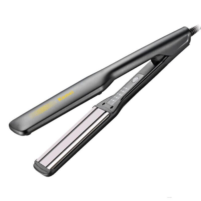 Iσιωτική μαλλιών Kemei με κεραμικές πλάκες και τεχνολογία τουρμαλίνης, που προστατεύει τα μαλλιά σας από την φθορά της θερμότητας και το φριζάρισμα, προσφέροντας λείο λαμπερό αποτέλεσμα.