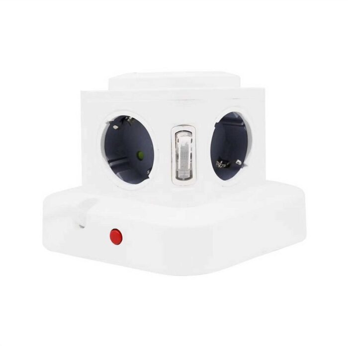 Κάθετο πολύπριζο 4 θέσεων με διακόπτες και πρίζα Σούκο – RC-G4P. Μήκος καλωδίου: 3m