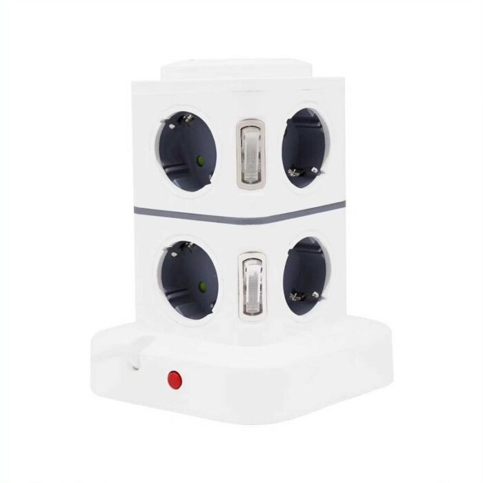 Κάθετο πολύπριζο 8 θέσεων με διακόπτες και πρίζα Σούκο – RC-G8P. Μήκος καλωδίου: 3m