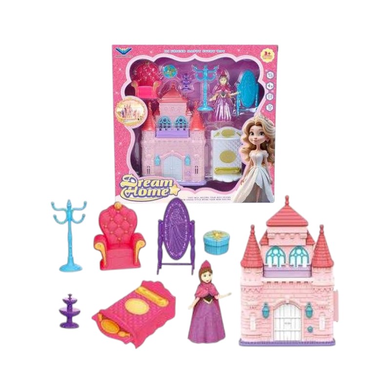 Mini Κουκλόσπιτο-κάστρο πριγκίπισσας με πλήρες σετ αξεσουάρ.