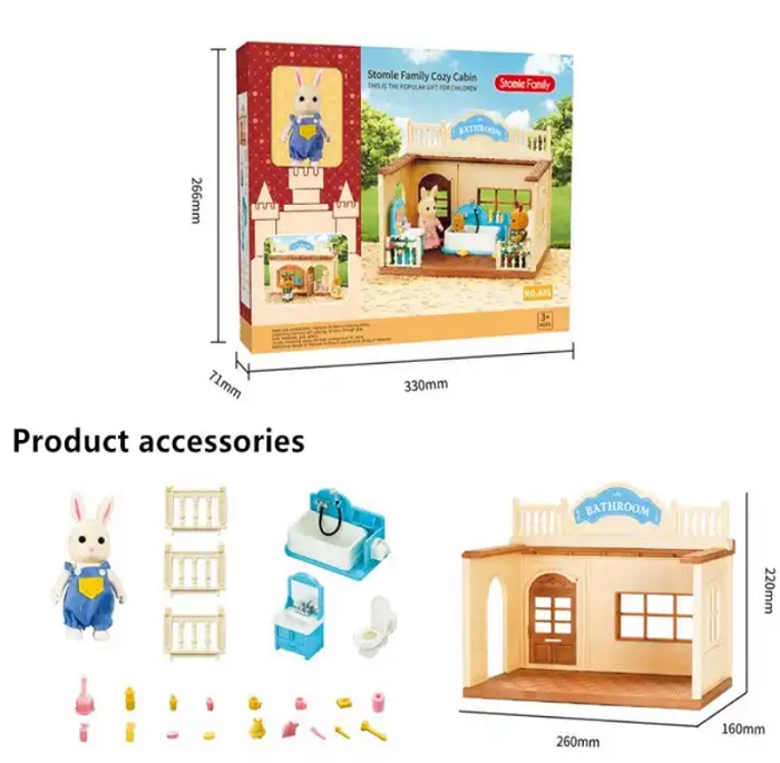 Κουκλόσπιτο mini με φιγούρα κουνελάκι και πλήρες σετ αξεσουάρ μπάνιου.