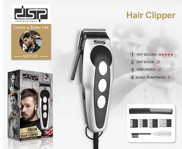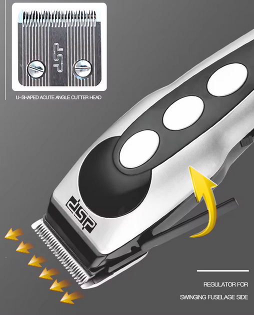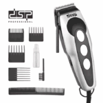 Ηλεκτρική ενσύρματη κουρευτική μηχανή από την DSP, με υψηλής ποιότητας κατασκευή και λεπίδες τιτανίου για ακριβές αποτέλεσμα.