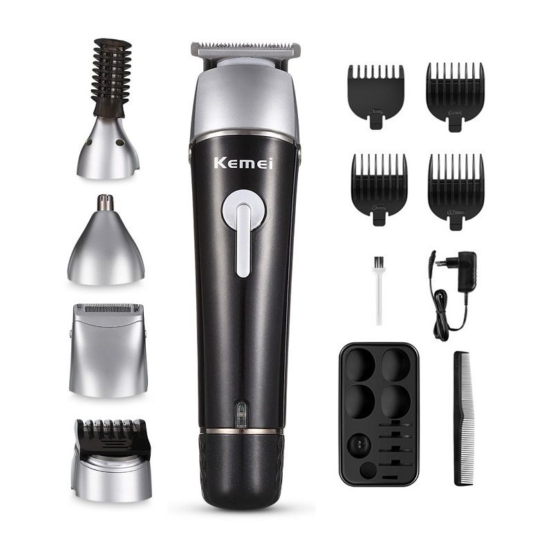 Επαγγελματική, επαναφορτιζόμενη ξυριστική-κουρευτική μηχανή και trimmer Kemei, με εξαιρετικό μεταλλικό design. Χαρακτηριστικά: Προσαρμόσιμη λεπίδα ακριβείας από ανοξείδωτο ατσάλι που πλένεται