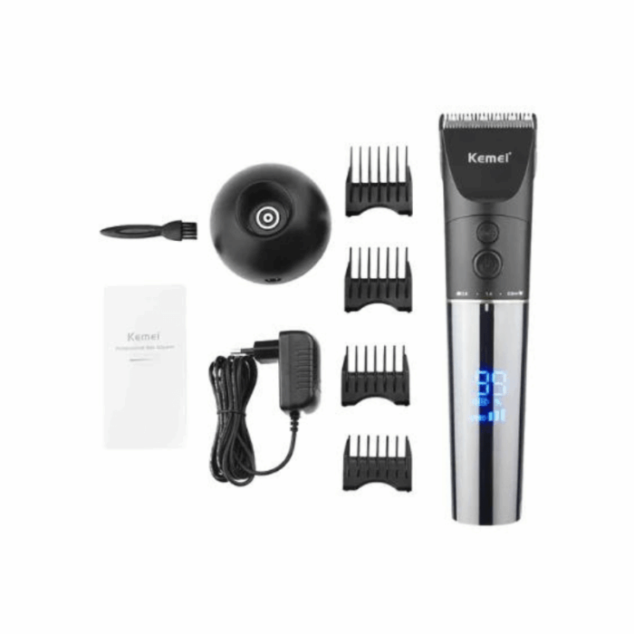Κουρευτική μηχανή της εταιρίας Kemei, κατάλληλη για χρήση σε περιοχές όπως τα μαλλιά, τα γενιά και το σώμα. Λειτουργεί με μπαταρία, ενώ απαιτούνται 3 ώρες για μια πλήρη φόρτιση, η οποία παρέχει έως και 180 λεπτά αυτονομίας.