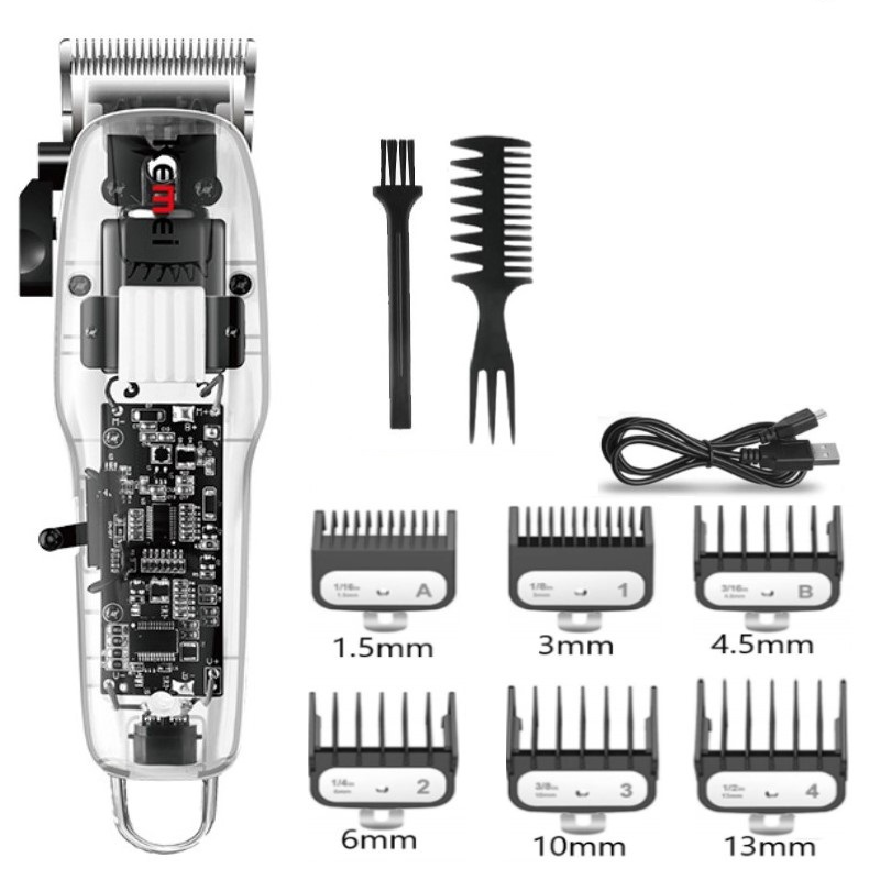 Επαγγελματική, επαναφορτιζόμενη ξυριστική-κουρευτική μηχανή και trimmer Kemei, με εξαιρετικό μεταλλικό design. Χαρακτηριστικά: Προσαρμόσιμη λεπίδα ακριβείας από ανοξείδωτο ατσάλι που πλένεται