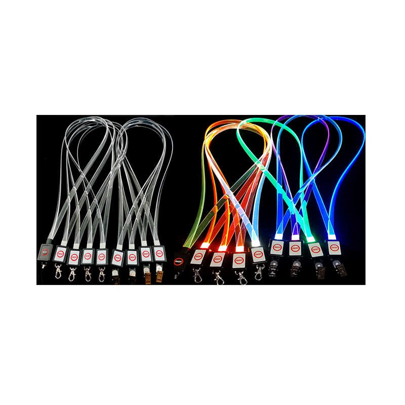 Κρεμαστό λουρί λαιμού για κλειδιά, Smartphone κτλ. με εντυπωσιακό φωτισμό LED. Κατασκευασμένο από πλαστική διάφανη ίνα και βάση/χειριστήριο LED με πλήκτρο On/Off που φωτίζει ολόκληρο το λουρί σε ποικιλία χρωμάτων. Περίμετρος λουριού: 80cm, Μήκος: 40cm, Πλάτος ίνας: 1.2cm, Διαστάσεις χειριστηρίου: 3.4 x 2.6 x 1.4cm.