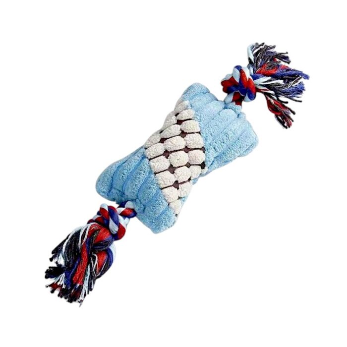 Λούτρινο παιχνίδι σκύλου – Soft Toy με σχοινί, κατασκευασμένο από μαλακό αλλά ιδιαίτερα ανθεκτικό, μη τοξικό υλικό. Θα γίνει το αγαπημένο καθημερινό παιχνίδι που το σκυλάκι σας θα λατρέψει. Διαστάσεις 20x7cm.