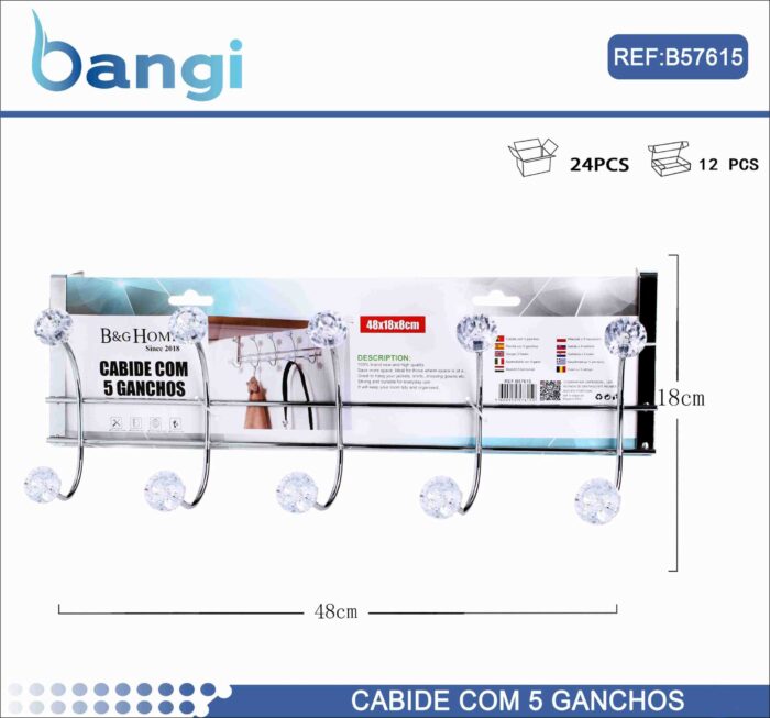 Μεταλλική κρεμάστρα πόρτας 5 θέσεων – 57615