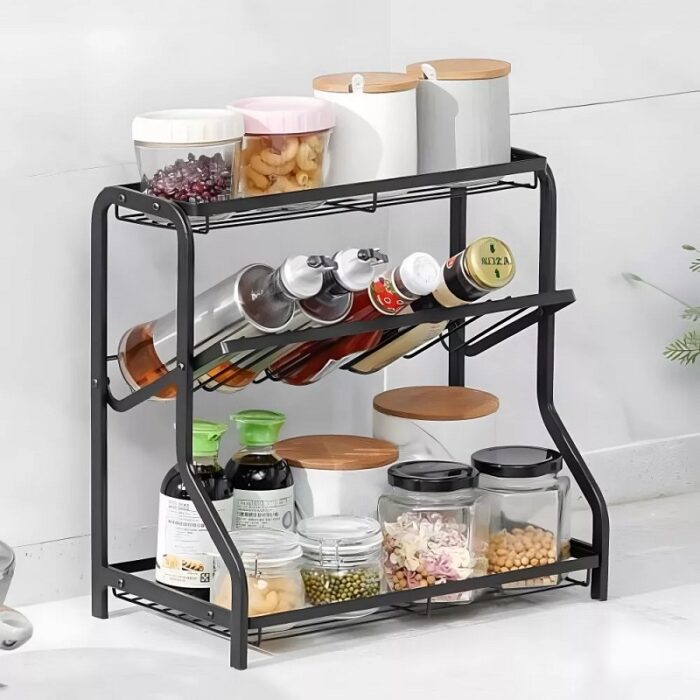 Μεταλλική ραφιέρα τροφίμων κουζίνας, με 3 πρακτικά ράφια κατάλληλα για γυάλινα δοχεία και μπουκάλια.