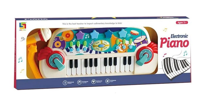 Παιδικό εκπαιδευτικό πιάνο, σε υπέροχο πολύχρωμο σχεδιασμό, με μικρόφωνο και πολλαπλές επιλογές ήχων, για τους μικρούς λάτρεις της μουσικής.