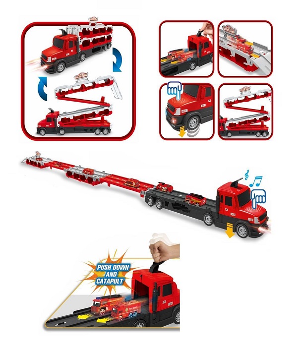 Παιδικό όχημα μεταφοράς αυτοκινήτων με υπέροχο ρεαλιστικό σχεδιασμό και εκτοξευτή-catapult για εντυπωσιακές ταχύτητες!
