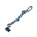 Παιχνίδι σκύλου σχοινί με κόμπους, από ανθεκτικό, μη τοξικό υλικό, ιδανικό για παιχνίδια τραβήγματος/αντίστασης ενώ παράλληλα βοηθά στην υγιεινή στόματος του σκύλου σας καθώς καθαρίζει ήπια και απασχολεί τα δόντια του. Συνολικό μήκος: 60cm.