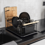 Πιατοθήκη αποστράγγισης μεταλλική, σε πρακτικό σχεδιασμό, με θήκη μαχαιροπίρουνων.