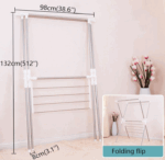 Πτυσσόμενη κρεμάστρα δαπέδου διπλή και απλώστρα ρούχων πολλαπλών χρήσεων. Μεταλλικός σκελετός. Ρυθμιζόμενο μήκος βέργας. Διαστάσεις: 98-155 x 68 x 132 cm.