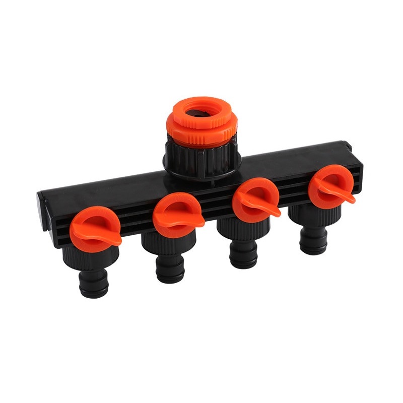 Διανομέας ποτίσματος για βρύση κήπου που σας επιτρέπει να συνδέσετε σε μία παροχή έως και 4 λάστιχα. Διαθέτει πρακτικούς διακόπτες ελέγχου ροής σε κάθε έξοδο. Πλαστική κατασκευή υψηλής ανθεκτικότητας στη πίεση του νερού. (δεν περιλαμβάνονται ταχυσύνδεσμοι)