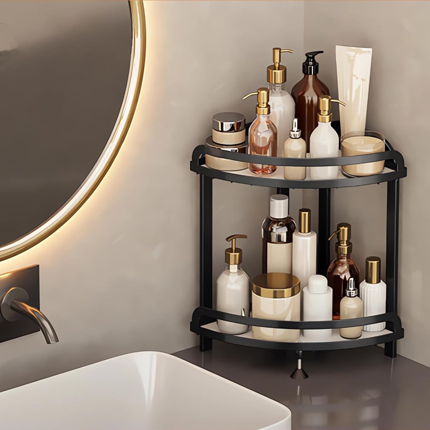 Μεταλλική επιτραπέζια βάση οργάνωσης καλλυντικών και ειδών μπάνιου, γωνιακή, με μοντέρνο σχεδιασμό που θα προσδώσει στυλ στον χώρο σας.