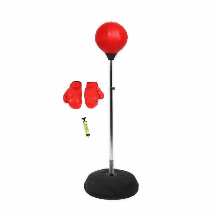 Σάκος μποξ αέρος, επιδαπέδιος με σετ γάντια.