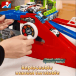 Σετ αυτοκινητόδρομος – Parking με τιμόνι και τσουλήθρα για τρελά κόλπα, σε υπέροχο πολύχρωμο σχεδιασμό, με ήχους, για ένα παιχνίδι που θα σε συναρπάσει.