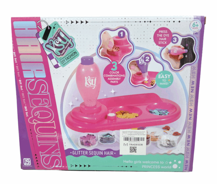 Παιδικό σετ για υπέροχα λαμπερά σχέδια στα μαλλιά, εύκολα και γρήγορα χάρη στα ειδικά σύνεργα που περιλαμβάνονται.