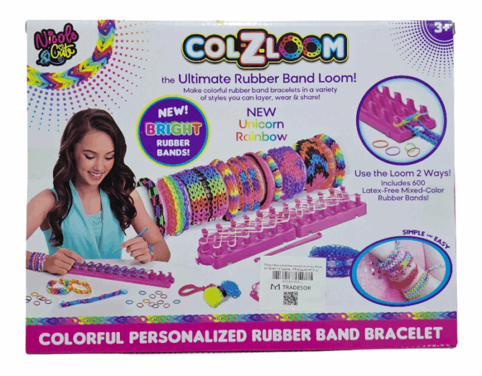 Σετ κατασκευής ελαστικών βραχιολιών DIY με ποικιλία από πολύχρωμα λαστιχάκια, πρακτική βάση πλέξης και όλα τα σύνεργα που θα χρειαστείς για να φτιάξεις τις δικές σου υπέροχες δημιουργίες όπως εσύ θα ήθελες!
