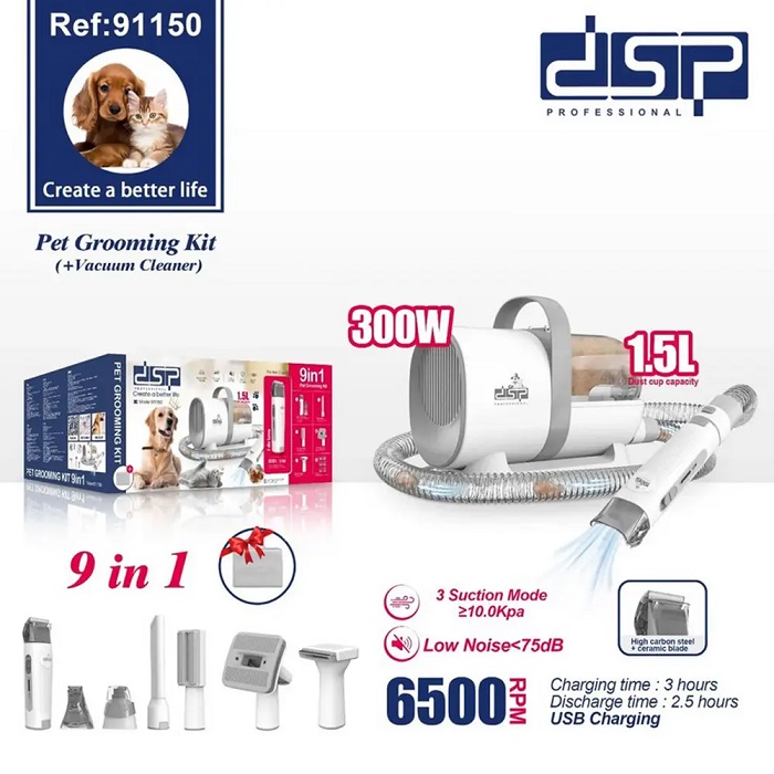 Πρωτοποριακό σετ κουρέματος και περιποίησης κατοικιδίων με σύνδεση σε συσκευή αναρρόφησης των τριχών για να μπορείτε να περιποιείστε το κατοικίδιό σας άμεσα και εύκολα μέσα στο σπίτι σας χωρίς να γεμίζει τρίχες ο χώρος σας. Διαθέτει πλήρες σετ κεφαλών για κούρεμα και χτένισμα, ιδανικές για ασφαλή περιποίηση σε κάθε δύσκολο σημείο.