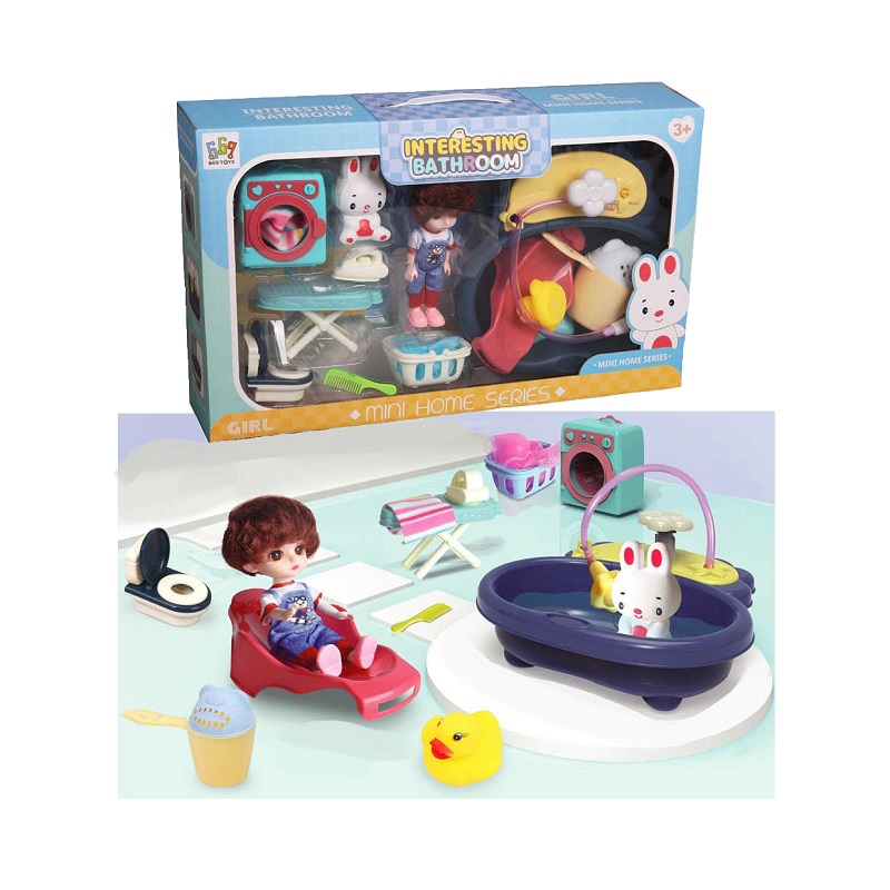 Σετ κούκλα με πλήρες σετ αξεσουάρ μπάνιου και φροντίδας, για την περιποιηθείς και να το φροντίσεις όπως εσύ θα ήθελες.