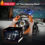 Σετ τιμονιέρα gaming PXN-V3PRO με μεγάλο τιμόνι και πετάλια ποδιών, με ελαστικό περίβλημα και ρεαλιστικό σχεδιασμό για να απολαμβάνεις το παιχνίδι σου οδηγώντας σαν επαγγελματίας, ιδανικό για τους λάτρεις των racing games.