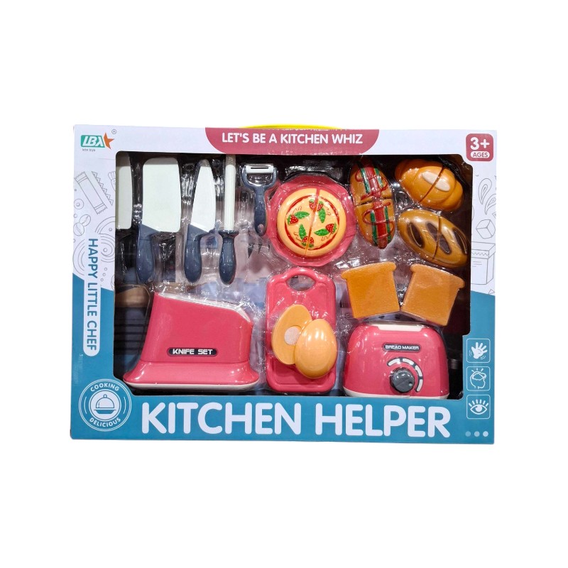 Παιδικό σετ κουζίνας με φρυγανιέρα, αξεσουάρ, σκεύη και τρόφιμα, σε υπέροχο πολύχρωμο σχεδιασμό.