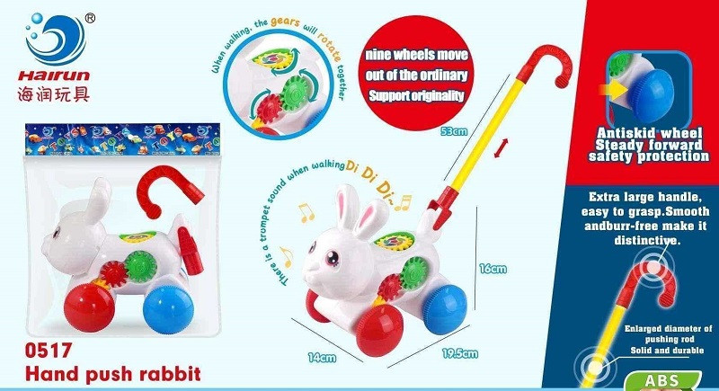 Συρόμενο παιχνίδι Λαγουδάκι με γρανάζια που στριφογυρίζουν και κουδουνάκια, με υπέροχο πολύχρωμο σχεδιασμό και εργονομική λαβή για ατελείωτες βόλτες παντού!