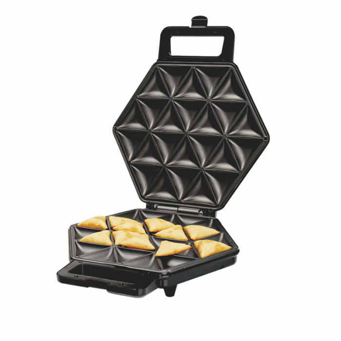 Συσκευή για mini τρίγωνα πιτάκια που θα λατρέψουν μικροί και μεγάλοι. Δημιουργήστε εύκολα και γρήγορα, έως και 24 πιτάκια σε λίγα λεπτά, με τέλειο σχήμα, χάρη στις ειδικές αντικολλητικές πλάκες που θα ψήσουν άψογα τα πιτάκια σας πάνω-κάτω, χωρίς κόπο στο καθάρισμα.