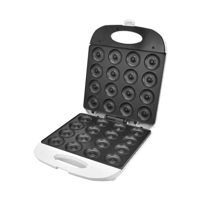 Συσκευή για λαχταριστά mini ντόνατς που θα λατρέψουν μικροί και μεγάλοι, με εναλλακτικό ψήσιμο, χωρίς το χρονοβόρο και ανθυγιεινό τηγάνισμα. Δημιουργήστε εύκολα και γρήγορα, έως και 16 donuts σε λίγα λεπτά, με τέλειο σχήμα, χάρη στις ειδικές αντικολλητικές πλάκες που θα ψήσουν άψογα τα donuts πάνω-κάτω, χωρίς την ανάγκη προσθήκης λαδιού και χωρίς κόπο στο καθάρισμα.