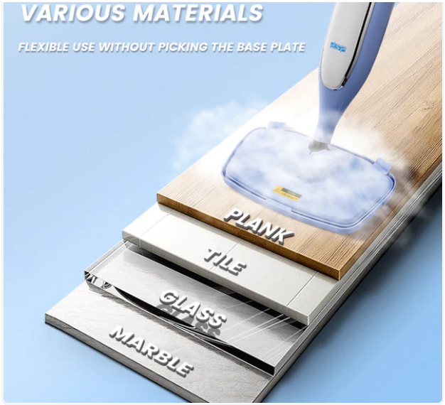 Σφουγγαρίστρα-ατμοκαθαριστής υψηλής ποιότητας και ισχύος, με αποσπώμενο καθαριστή χειρός και 4 εναλλασσόμενες κεφαλές για καθαρισμό παντός τύπου επιφάνειας, επίπλων, υφασμάτων κτλ. Εργονομικός σχεδιασμός για εύκολη χρήση. Καθαρίζει σε βάθος ενώ απολυμαίνει ριζικά πατώματα και επιφάνειες εξουδετερώνοντας το 99% των μικροβίων.