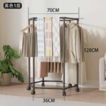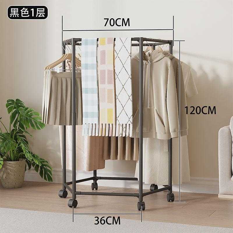 Τροχήλατη κρεμάστρα δαπέδου εξάγωνη, με μεταλλικό σκελετό και πρακτικό σχεδιασμό με ρόδες για εύκολη μετακίνηση και περιστροφή, ιδανική ως έπιπλο εισόδου ή για την οργάνωση των ρούχων στο δωμάτιό σας.