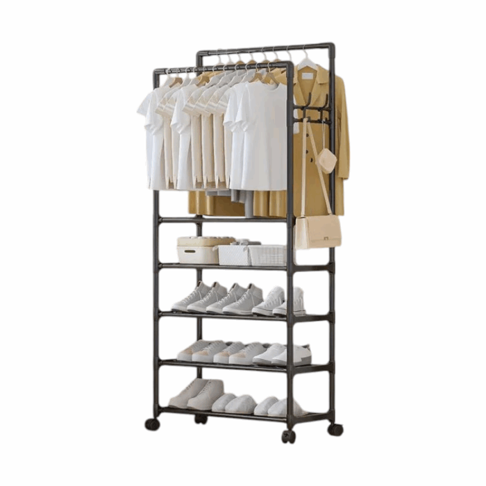 Τροχήλατη κρεμάστρα δαπέδου με ράφια παπουτσιών – YH6619-5 – 522855 – Black